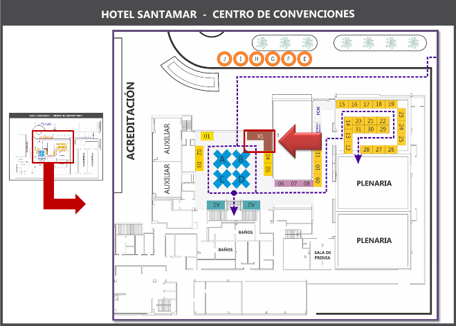 Se destaca la ubicación estratégica de su área en el lobby principal del centro de convenciones, así como el ingreso a la plenaria, para tres representantes de la empresa.