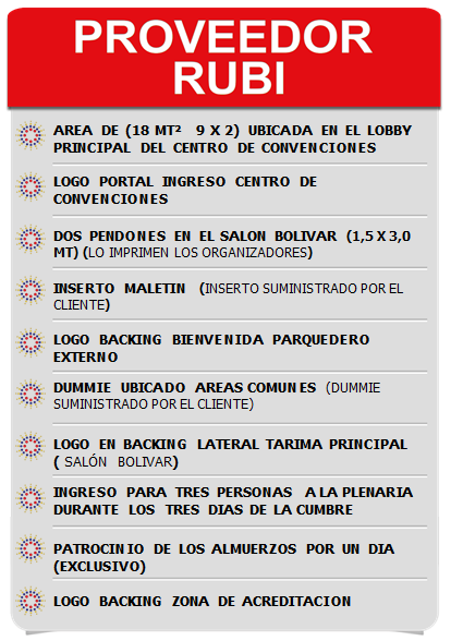 El PROVEEDOR RUBÍ, tiene una presencia especial de su compañía durante la Cumbre.